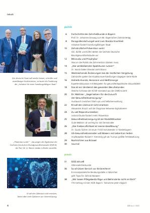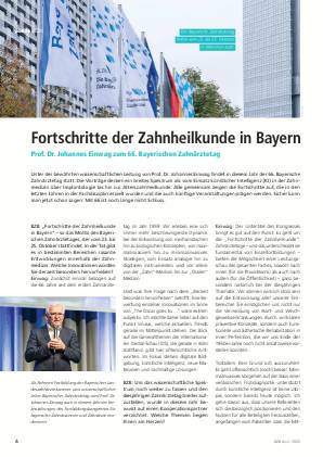 Fortschritte der Zahnheilkunde in Bayern – Prof. Dr. Johannes Einwag zum 66. Bayerischen Zahnärztetag – Koalitionsverhandlungen: Zahnärzte spielen keine Rolle – Hundertjährige Patienten: Eine Datenanalyse – CME-Beitrag