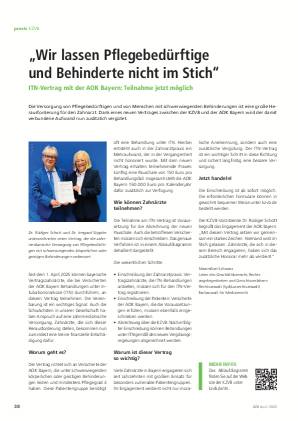 Die Versorgung von Pflegebedürftigen und von Menschen mit schwerwiegenden Behinderungen ist eine große Herausforderung für den Zahnarzt. Dank eines neuen Vertrages zwischen der KZVB und der AOK Bayern wird der damit verbundene Aufwand nun zusätzlich vergütet.
