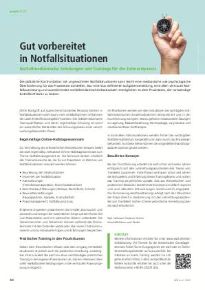 Die plötzliche Konfrontation mit ungewohnten Notfallsituationen kann leicht eine medizinische wie psychologische Überforderung für das Praxisteam darstellen. Nur eine klar definierte Aufgabenverteilung, eine allen vertraute Notfallausrüstung und ausreichendes notfallmedizinisches Basiswissen ermöglichen es dem Praxisteam, die notwendige Ersthilfe effektiv zu leisten.