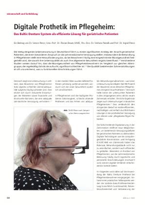 Die stetig steigende Lebenserwartung in Deutschland führt zu einem signifikanten Anstieg der Anzahl geriatrischer Patienten, die einen besonderen Anspruch an die zahnmedizinische Versorgung stellen. Insbesondere die Behandlung in Pflegeheimen stellt eine Herausforderung dar, da bei Bewohnern häufig eine eingeschränkte Mundgesundheit festgestellt wird, die sowohl ihre Lebensqualität als auch ihre allgemeine Gesundheit negativ beeinflusst.1, 2 Verschiedene Studien weisen darauf hin, dass die Mundgesundheit von Pflegeheimbewohnern im Vergleich zur gleichen Altersgruppe, die regelmäßig Zahnärzte aufsucht, signifikant schlechter ist.1, 2 Die Qualität bestehender Zahnersatzlösungen ist oft unzureichend, was zu funktionellen Einschränkungen führt.