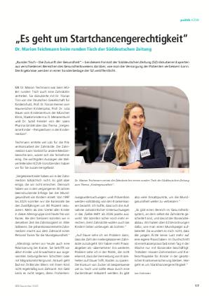 „Runder Tisch – Die Zukunft der Gesundheit“ – bei diesem Format der Süddeutschen Zeitung (SZ) diskutieren Experten aus verschiedenen Bereichen des Gesundheitswesens darüber, wie man die Versorgung der Patienten verbessern kann. Die Ergebnisse werden in einer Sonderbeilage der SZ veröffentlicht.
