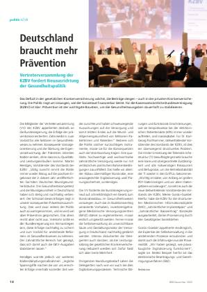 Für die KZVB ist klar: Ohne mehr Prävention wird das deutsche Gesundheitswesen auf Dauer nicht finanzierbar bleiben. Die Vertreterversammlung (VV) der KZVB, die Ende November stattfand, forderte in mehreren Anträgen bessere Rahmenbedingungen für die präventionsorientierte Zahnmedizin.