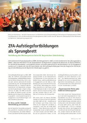 Zahnmedizinische Prophylaxeassistenz (ZMP), Dentalhygieniker/-in (DH) und Zahnmedizinische Verwaltungsassistenz (ZMV) – diese drei Titel stehen für die Vizepräsidentin der Bayerischen Landeszahnärztekammer, Dr. Barbara Mattner, für höchste Fachkompetenz, unermüdlichen Einsatz und echte Leidenschaft für die Zahnmedizin. Für ihr Engagement wurden auch in diesem Jahr die 20 Prozent Besten der ZFA-Aufstiegsfortbildungen beim 66. Bayerischen Zahnärztetag mit dem Meisterpreis der Bayerischen Staatsregierung geehrt.