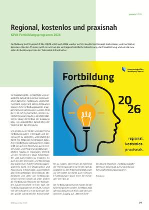 Fortbildung leicht gemacht! Die KZVB setzt auch 2026 wieder auf ihr bewährtes Konzept kostenloser, wohnortnaher Seminare. Bei den Themen geht es rund um die vertragszahnärztliche Abrechnung, die Praxisführung und um die neuesten Entwicklungen bei der Telematik-Infrastruktur.