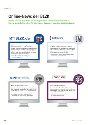 Was ist neu auf den Websites der Bayerischen Landeszahnärztekammer? Unsere aktuelle Übersicht für den Monat Dezember beantwortet diese Frage.