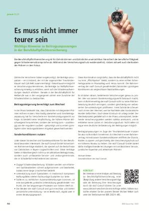 Die Berufshaftpflichtversicherung ist für Zahnärztinnen und Zahnärzte unverzichtbar. Sie sichert die berufliche Tätigkeit gegen Schadensersatzansprüche ab. Während der Versicherungsschutz existenziell ist, rücken aktuell auch die Kosten der Policen in den Fokus.