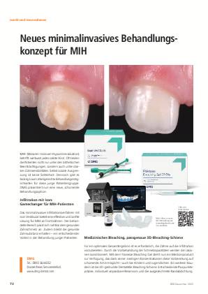 MIH (Molaren-Inzisiven-Hypomineralisation) betrifft weltweit jedes siebte Kind. Oft leiden die Patienten nicht nur unter den ästhetischen Beeinträchtigungen, sondern auch unter star- ken Zahnsensibilitäten. Selbst soziale Ausgrenzung ist keine Seltenheit. Dennoch gibt es bislang kaum altersgerechte Behandlungsmöglichkeiten für diese junge Patientengruppe. DMG präsentiert nun eine neue, schonende Behandlungsoption...