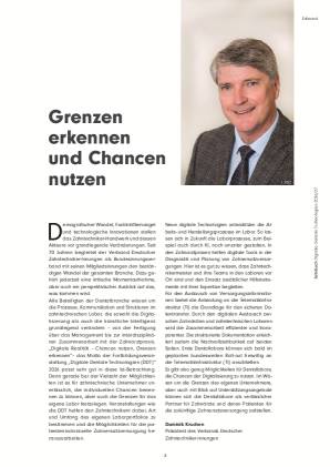 Demografischer Wandel, Fachkräftemangel und technologische Innovationen stellen das Zahntechniker-Handwerk und dessen Akteure vor grundlegende Veränderungen. Seit 70 Jahren begleitet der Verband Deutscher Zahntechniker-Innungen als Bundesinnungsverband mit seinen Mitgliedsinnungen den beständigen Wandel der gesamten Branche. Dazu gehört jederzeit eine kritische Momentaufnahme, aber auch ein perspektivischer Ausblick auf das, was kommen wird...