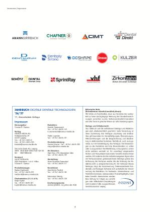 Mit dem Jahrbuch Digitale Dentale Technologien legt die OEMUS MEDIA AG in 17., umfassend aktualisierter und überarbeiteter Auflage ein Kompendium für die digitale Zahnmedizin und Zahntechnik vor. Der Band wendet sich sowohl an Einsteiger und erfahrene Anwender als auch an all jene, die in der digitalen Zahnmedizin und Zahntech- nik eine vielversprechende Möglichkeit sehen, ihr Leistungsspektrum zu vervollständigen und damit in die Zukunft zu investieren. In Anlehnung an die Jahrbücher zu den Themen Implantologie und Zahnerhaltung informiert dasJahrbuch Digitale Dentale Technologien mittels Grundlagenbeiträgen, Anwenderberichten, Fallbeispielen, Produkt- highlights sowie Herstellerinformationen darüber, was innerhalb der digitalen Zahnmedizin State of the Art ist. Renommierte Autoren aus Wissenschaft, Praxis, Labor und Industrie widmen sich im vorliegenden Jahrbuch einem Themenspektrum, das von der 3D-Diagnostik über die computergestützte Navigation und prothetische Planung bis hin zur CAD/CAM-Fertigung reicht. Es werden Tipps für die Digitalisierung von Abläufen und Verfahren in Praxis und Labor gegeben sowie aktuelle Technologien im 3D-Druck aufgezeigt. Thematische Produkthighlights ermöglichen einen schnellen Überblick über die Bereiche Planungssoftware, digitale Volumentomografen, Intraoralscanner, Scanner, Fräsgeräte sowie 3D-Drucker.