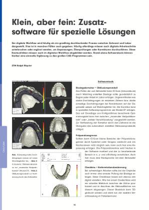 Der digitale Workflow wird häufig als ein gradlinig durchlaufender Prozess zwischen Zahnarzt und Labor dargestellt. Dies ist in manchen Fällen auch gegeben. Häufig allerdings müssen auch digitale Arbeitsschritte unterbrochen oder ergänzt werden, um Anpassungen, Überprüfungen oder Korrekturen durchzuführen. Diese Eventualitäten müssen auch im digitalen Workflow abgebildet werden. Stand-alone-Softwaretools können hierbei eine sinnvolle Ergänzung zu den großen CAD-Programmen sein.