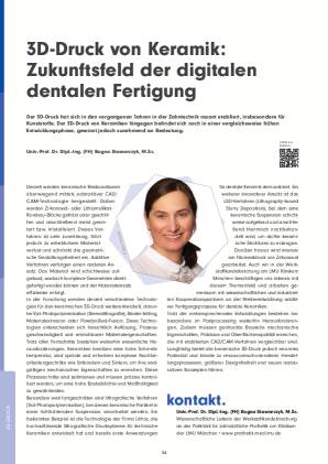 Der 3D-Druck hat sich in den vergangenen Jahren in der Zahntechnik rasant etabliert, insbesondere für Kunststoffe. Der 3D-Druck von Keramiken hingegen befindet sich noch in einer vergleichsweise frühen Entwicklungsphase, gewinnt jedoch zunehmend an Bedeutung.