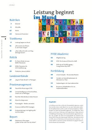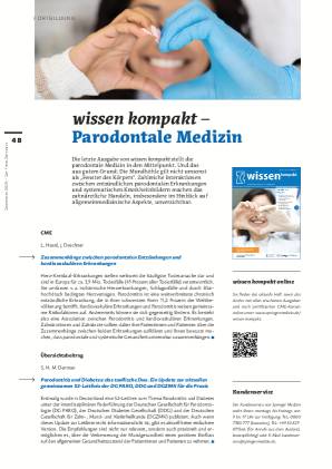 Die letzte Ausgabe von wissen kompakt stellt die parodontale Medizin in den Mittelpunkt. Und das aus gutem Grund: Die Mundhöhle gilt nicht umsonst als „Fenster des Körpers“. Zahlreiche Interaktionen zwischen entzündlichen parodontalen Erkrankungen und systematischen Krankheitsbildern machen das zahnärztliche Handeln, insbesondere im Hinblick auf allgemeinmedizinische Aspekte, unverzichtbar.