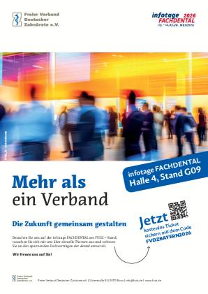 Mehr als eine Messe. Fachlich, sportlich und kollegial. So startet der Freie Verband Deutscher Zahnärzte (FVDZ) am 13. und 14. März 2026 als offizieller Partner in die infotage FACHDENTAL München und macht die Messe zur Bühne für Austausch und Teamgeist.