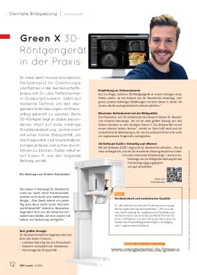 Dr. med. dent. Nicolai Wunderlich, Fachzahnarzt für Oralchirurgie und Partner in der Gemeinschaftspraxis mit Dr. Lars Partenheimer in Duisburg-Duissern, setzt auf moderne Technik, um den steigenden Anforderungen im Praxisalltag gerecht zu werden. Beim 3D-Röntgen legt er dabei besonderen Wert auf eine niedrige Strahlenbelastung, kombiniert mit einer hohen Bildqualität, um die Diagnostik und Implantatplanungen präzise und sicher durchführen zu können. Dabei setzt er auf Green X, wie der folgende Beitrag verrät.