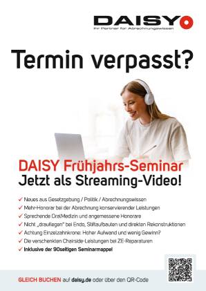 Am 31. Mai 2025 lädt AERA in Kooperation mit REBMANN RESEARCH zum ersten Dental Future Day ins EMPIRE RIVERSIDE HOTEL nach Hamburg ein. Von KI-gestützter Diagnostik bis zur vernetzten Praxisorganisation – der Dental Future Day zeigt, wie digitale Tools eingesetzt werden können, um Arbeitsabläufe effizienter zu gestalten, die Kommunikation mit Patientinnen und Patienten zu verbessern und die Zahnarztpraxis zukunftssicher aufzustellen...