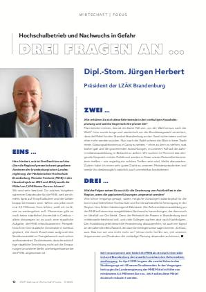 Hochschulbetrieb und Nachwuchs in Gefahr? Drei Fragen an … Dipl.-Stom. Jürgen Herbert, Präsident der LZÄK Brandenburg