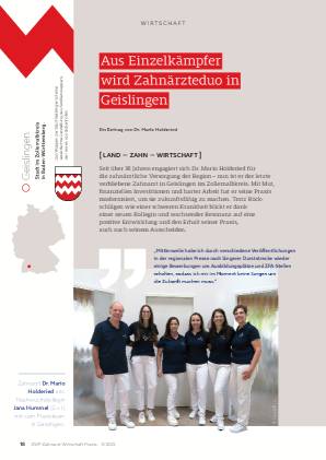 [ Land — Zahn — Wirtschaft ] Seit über 30 Jahren engagiert sich Dr. Mario Holderied fürdie zahnärztliche Versorgung der Region – nun ist er der letzte verbliebene Zahnarzt in Geislingen im Zollernalbkreis. Mit Mut, finanziellen Investitionen und harter Arbeit hat er seine Praxis modernisiert, um sie zukunftsfähig zu machen. Trotz Rückschlägen wie einer schweren Krankheit blickt er dank einer neuen Kollegin und wachsender Resonanz auf eine positive Entwicklung und den Erhalt seiner Praxis, auch nach seinem Ausscheiden.