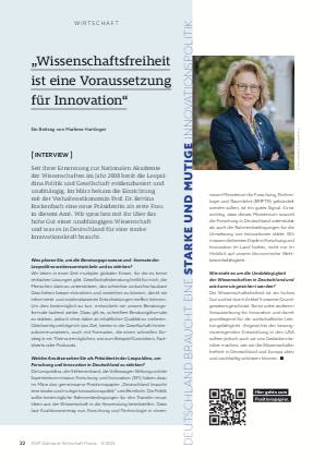 [ Interview ] Seit ihrer Ernennung zur Nationalen Akademie der Wissenschaften im Jahr 2008 berät die Leopoldina Politik und Gesellschaft evidenzbasiert und unabhängig. Im März bekam die Einrichtung mit der Verhaltensökonomin Prof. Dr. Bettina Rockenbach, eine neue Präsidentin als erste Frau in diesem Amt. Wir sprachen mit ihr über das hohe Gut einer unabhängigen Wissenschaft und was es in Deutschland für eine starke Innovationskraft braucht.