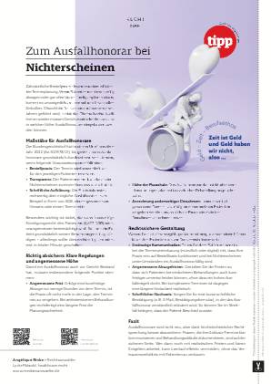 Ausfallhonorare sind nicht neu, aber dank höchstrichterlicher Rechtsprechung besser abzusichern. Praxen, die ihre Exklusiv-Termine klar kommunizieren und Behandlungsabläufe dokumentieren, sind auf der sicheren Seite. Wer dann noch mit realistischen Fristen und fairen Entgelten arbeitet, kann Leerlauf effektiv vermeiden, ohne das Vertrauensverhältnis mit Patienten zu verbauen...