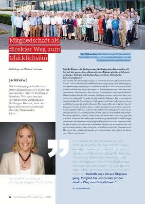 [ Interview ] Die Studiengruppe für Restaurative Zahnmedizin e.V. feiert im kommenden Jahr ihr 50jähriges Bestehen. Wir sprachen mit der derzeitigen Vorsitzenden, Dr. Margret Bäumer, über den Spirit der Gemeinschaft und aktuelle Themen des Fachs.