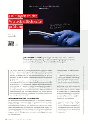 [ Praxismanagement ] Unlängst beriet ich eine Praxis bei einer Wirtschaftlichkeitsprüfung, in der es um Füllungen ging, wie in dem nachstehenden Auszug aus dem Anschreiben hervorgeht.