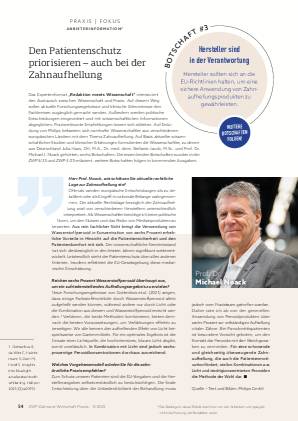 Das Expertenformat „Redaktion meets Wissenschaft“ intensiviert den Austausch zwischen Wissenschaft und Praxis. Auf diesem Weg sollen aktuelle Forschungsergebnisse und klinische Erkenntnisse den Fachkreisen zugänglich gemacht werden. Außerdem werden politische Entscheidungen eingeordnet und mit wissenschaftlichen Informationen abgeglichen. Praxisrelevante Empfehlungen lassen sich ableiten. Auf Einla- dung von Philips befassten sich namhafte Wissenschaftler aus verschiedenen europäischen Ländern mit dem Thema Zahnaufhellung.