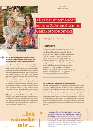 [ Fortbildung ] Ganzheitliche Gesundheit ist mehr als ein Trend. Dass dabei auch die Zahnmedizin eine wichtige Rolle spielt, zeigt Dr. Katja Meinel. Die Zahnärztin aus Naumburg hat einen Weg gefunden, zahnmedizinische Expertise mit Ernährungsmedizin und traditionellen Gesundheitspraktiken zu verbinden. Im Interview spricht sie darüber, wie dieser Ansatz nicht nur ihren Patienten zugutekommt, sondern auch Kolleginnen neue Perspektiven eröffnen kann.