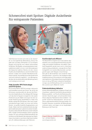 Viele Patienten fürchten sich mehr vor der „Spritze“ als vor der eigentlichen Behandlung. Genau hier setzt das innovative STA-System an: Es reduziert Ängste und sorgt für eine nahezu schmerzfreie Anästhesie. Die digitale, computerassistierte Lokalanästhesie ersetzt in immer mehr Zahnarztpraxen die klassische Injektion. Bereits mit dem ersten Tropfen des Anästhetikums wird die Schleimhaut benetzt, sodass eine schnelle Oberflächenanästhesie einsetzt. Anschließend wird die Kanüle sanft und leicht drehend eingeführt – eine Bewegung, die dank der bereits bestehenden Betäubung kaum noch wahrgenommen wird...