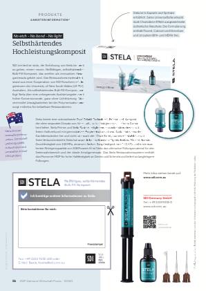 [ Verbrauchsmaterialien ] Vor dem Hintergrund des Amalgamverbotes in der Europäischen Union seit dem 1. Januar steigt die Nachfrage der Patienten nach einer zuzahlungsfreien, zahnfarbenen Seitenzahnfüllung. In dem Segment der Basisversorgung sind für den Zahnarzt Haltbarkeit und klinisch anwenderfreundliches Handling wichtige Parameter für die Produktauswahl. Der australische Dentalkonzern SDI stellt mit Stela ein selbsthärtendes Komposit vor, das unter diesen Anforderungen signifikante Vorteile aufweist.