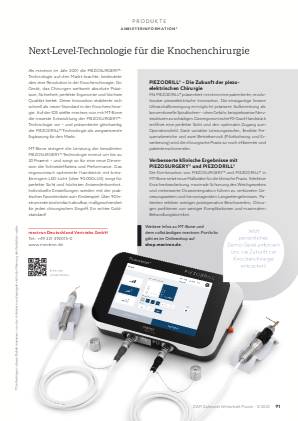 Als mectron im Jahr 2001 die PIEZOSURGERY®- Technologie auf den Markt brachte, bedeutete dies eine Revolution in der Knochenchirurgie: Ein Gerät, das Chirurgen weltweit absolute Präzision, Sicherheit, perfekte Ergonomie und höchste Qualität bietet. Diese Innovation etablierte sich schnell als neuer Standard in der Knochenchirurgie. Auf der IDS stellte mectron nun mit MT-Bone die neueste Entwicklung der PIEZOSURGERY®- Technologie vor – und präsentierte gleichzeitig die PIEZODRILL®-Technologie als wegweisende Ergänzung für den Markt...