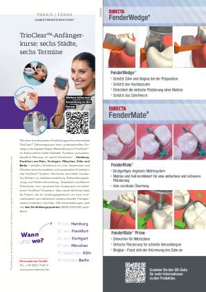 Mit einer bundesweiten Fortbildungsreihe unterstützt TrioClear™ Zahnarztpraxen beim professionellen Ein- stieg in die digitale Aligner-Behandlung mit TrioClear™. Im Fokus stehen dabei Ästhetik, Funktion und prärestaurative Planung. An sechs Standorten – Hamburg, Frankfurt am Main, Stuttgart, München, Köln und Berlin – erhalten Teilnehmer im Juni, September und Oktober einen kompakten und praxisnahen Einstieg in das TrioClear™-System...
