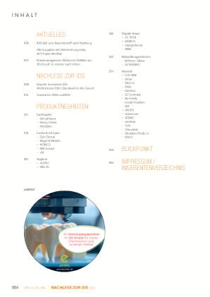 Liebe Leserinnen und Leser, die 41. Internationale Dental-Schau liegt hinter uns und ist ihrer Funktion als Weltleitmesse mehr als gerecht geworden. Dies belegen die Kennzahlen zur Messe, die Sie auf Seite 8 hier in dieser Ausgabe nachlesen können....