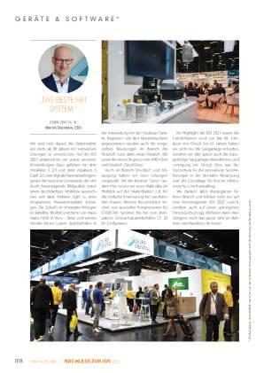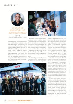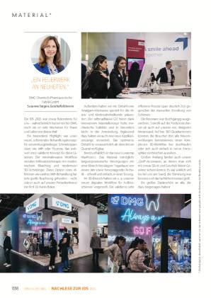 Ende März lief die Internationale Dental-Schau (IDS) bei ihrer 41. Ausgabe zur Höchstform auf. Das war zu erwarten – nicht jedoch die Größenordnung des Wachstums an Besuchern: plus 15 Prozent. Dabei repräsentierten die Innovationen die Dentalbranche in ihrer ganzen Breite und reichten vom weiterentwi- ckelten Quetschbiss zum Cloud-Computing und zur Hightech-Kariesdiagnostik mit kernmagnetischer Resonanztomografie, kurz MRT, und künstlicher Intelligenz...