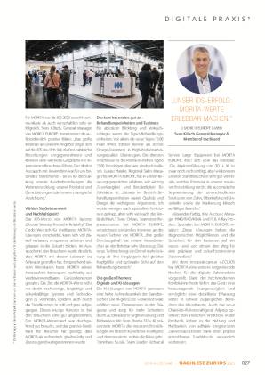 Für MORITA war die IDS 2025 sowohl kommunikativ als auch wirtschaftlich sehr erfolgreich. Sven Kölsch, General Manager von MORITA EUROPE, kommentiert die außerordentlich positive Bilanz: „Das große Interesse an unserem Angebot zeigte sich auf der IDS deutlich: Wir durften zahlreiche Bestellungen entgegennehmen und konnten viele wertvolle Gespräche mit interessierten Besuchern führen. Der direkte Austausch mit Anwendern war für uns besonders bereichernd – sei es für die Stärkung unserer Kundenbeziehungen, die Weiterentwicklung unserer Produkte und Dienstleistungen oder unsere strategische Ausrichtung.“...