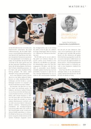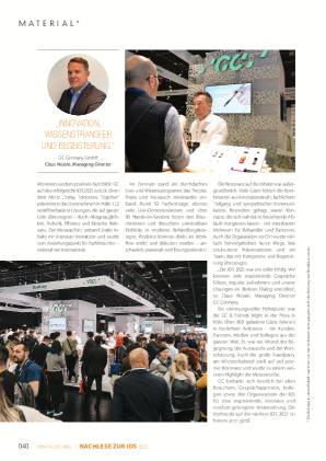 Mit einem rundum positiven Fazit blickt GC auf eine erfolgreiche IDS 2025 zurück. Unter dem Motto „Today, Tomorrow, Together“ präsentierte das Unternehmen in Halle 11.2 workflowbasierte Lösungen, die auf ganzer Linie überzeugten – durch Alltagstauglich- keit, Ästhetik, Effizienz und klinische Relevanz. Der Messeauftritt verband starke Inhalte mit intensiver Interaktion und wurde zum Anziehungspunkt für Fachbesucher – national wie international...