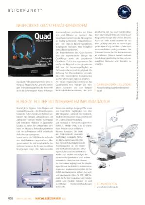 Ein besonderes Highlight auf der diesjährigen IDS war unsere EURUS S1 Holder mit integriertem Implantatmotor und Apex Locator. Der EURUS Implantatmotor gehört zur weltweit anerkannten Bien Air MX i LED Familie, die für ihre herausragende Funktionalität und Qualität bekannt ist und zuverlässige Implantatbehandlungen sicherstellt. Auch der Apex Locator basiert auf einer Bien Air Entwicklung...
