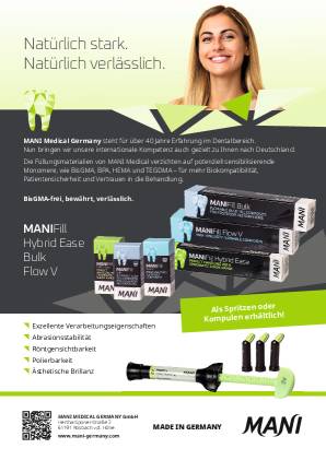 Testimonial // Eine Kunststofffüllung ist eben nicht nur eine Kunststofffüllung. Mani Medical: „Unser Bis-GMA-freies ManiFill Hybrid Ease lässt sich exzellent verarbeiten, ist abrasionsstabil, weist eine hohe Polierbarkeit auf, ist röntgenopak und passt sich der Farbe des Zahnes an.“