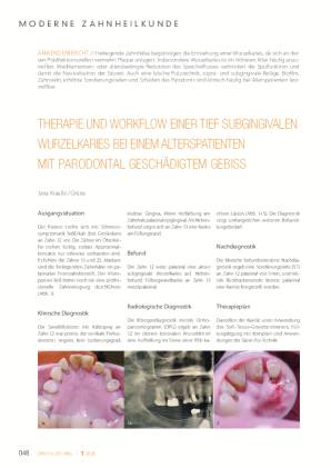 Therapie und Workflow einer tief subgingivalen Wurzelkaries bei einem Alterspatienten mit parodontal geschädigtem Gebiss