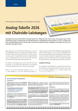 Analog-Tabelle 2026 mit Chairside-Leistungen – Abrechnungsempfehlungen zur Analogieberechnung