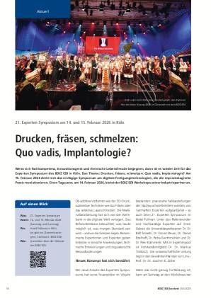 21. Experten Symposium am 14. und 15. Februar 2026 in Köln: Drucken, fräsen, schmelzen: Quo vadis, Implantologie?