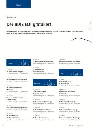 In den Monaten Januar bis März 2026 feiern die folgenden Mitglieder des BDIZ EDI einen „runden“ oder besonderen Geburtstag. Der Verbandsvorstand gratuliert und wünscht alles Gute.