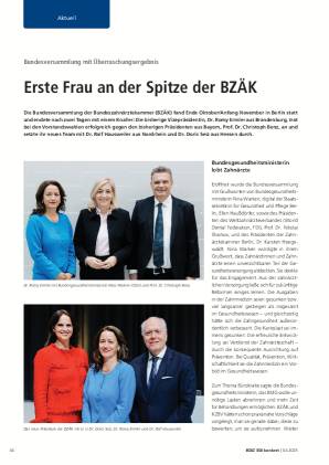 Die Bundesversammlung der Bundeszahnärztekammer (BZÄK) fand Ende Oktober/Anfang November in Berlin statt und endete nach zwei Tagen mit einem Knaller: Die bisherige Vizepräsidentin, Dr. Romy Ermler aus Brandenburg, trat bei den Vorstandswahlen erfolgreich gegen den bisherigen Präsidenten aus Bayern, Prof. Dr. Christoph Benz, an und setzte ihr neues Team mit Dr. Ralf Hausweiler aus Nordrhein und Dr. Doris Seiz aus Hessen durch.