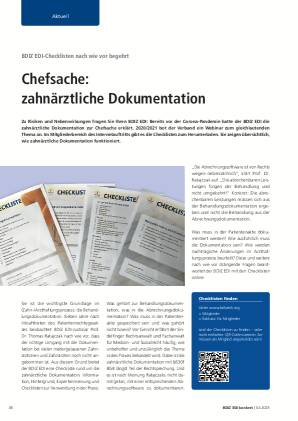 Chefsache: zahnärztliche Dokumentation – BDIZ EDI-Checklisten nach wie vor begehrt