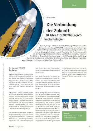 Die Verbindung der Zukunft: 30 Jahre TIOLOX®/ tioLogic®-Implantologie –