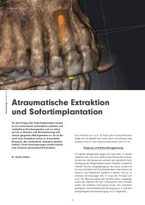 Für den Erfolg einer Sofortimplantation kommt es auf ausreichend vorhandenes apikales und vestibuläres Knochengewebe und vor allem auf ein in Volumen und Keratinisierung suffizientes gingivales Weichgewebe an. So ist die nach einer Extraktion immer zu erwartende Rezession des vestibulären Gewebes deutlich limitiert. Gute Voraussetzungen schafft hierbei eine maximal atraumatische Extraktion.
