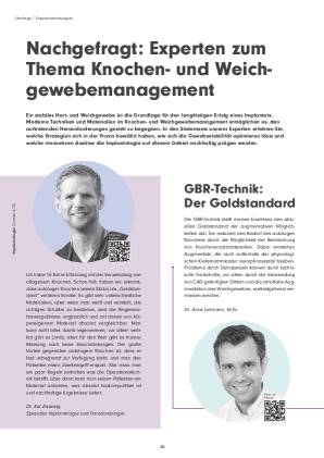 Ein stabiles Hart- und Weichgewebe ist die Grundlage für den langfristigen Erfolg eines Implantats. Moderne Techniken und Materialien im Knochen- und Weichgewebemanagement ermöglichen es, den auftretenden Herausforderungen gezielt zu begegnen. In den Statements unserer Experten erfahren Sie, welche Strategien sich in der Praxis bewährt haben, wie sich die Gewebestabilität optimieren lässt und welche innovativen Ansätze die Implantologie auf diesem Gebiet nachhaltig prägen werden.