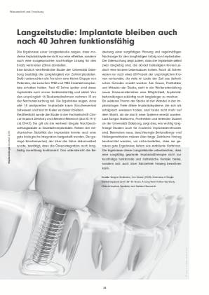 Die Ergebnisse einer Langzeitstudie zeigen, dass mo- derne Implantatsysteme nicht nur eine effektive, sondern auch eine ausgesprochen nachhaltige Lösung für den Ersatz verlorener Zähne darstellen...