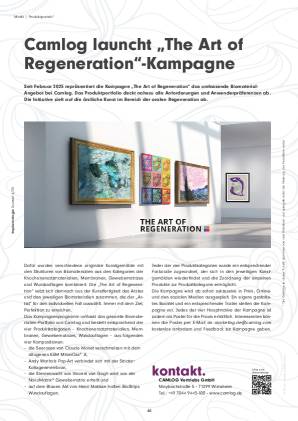 Seit Februar 2025 repräsentiert die Kampagne „The Art of Regeneration“ das umfassende BiomaterialAngebot bei Camlog. Das Produktportfolio deckt nahezu alle Anforderungen und Anwenderpräferenzen ab.Die Initiative zielt auf die ärztliche Kunst im Bereich der oralen Regeneration ab.