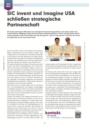 SIC invent und Imagine USA haben eine strategische Partnerschaft geschlossen, die darauf abzielt, die fortschrittlichste volldigitale Lösung mit den kürzesten Bearbeitungszeiten auf dem amerikanischen Dentalmarkt anzubieten. Diese Partnerschaft wird das Konzept der „truly one stop solution“ im Bereich der dentalen Implantate auf ein neues Level heben.