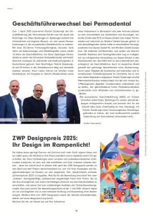 Stillstand ist keine Option – Weiterentwicklung schon! Deutschlands Topadresse für den- tale Nachrichten- und Fachinformationen ZWP online zeigte sich pünktlich zur IDS in einem frischeren und zeitgemäßeren Look. Bewährtes wurde bewusst erhalten, während insbesondere in die Jahre gekommene Gestaltungselemente vollständig überarbeitet wurden. Im Mittelpunkt standen dabei die Nutzerfreundlichkeit und Übersichtlichkeit, um die Orientierung auf der Website weiter zu optimieren...
